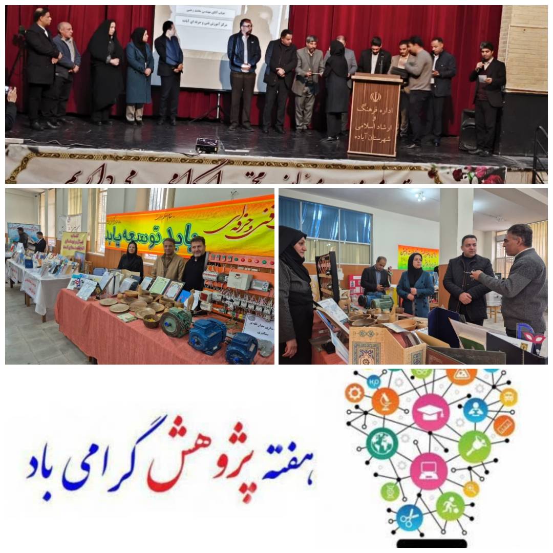 سه شنبه 25 آذرماه 1404 حضور فرماندار محترم شهرستان وروسای ادارات و پژوهشگران برتر شهرستان در سالن آمفی تئاتر اداره فرهنگ و ارشاد اسلامی که بازدیداز نمایشگاه وتجلیل از پژوهشگران برتربه خصوص سرکار خانم لیلا یوسفی ازمربیان مرکز خواهران وآقای مهندس رجبی از آموزشگاه رویش نبوغ و همچنین خواندن سرود منبت آباده از سپاه خاتم الانبیا وتماس تصویری با پژوهشگر برتر جهان در سال2014 ازاباده دکتر شفیعی از دانشگاه هاروارد امریکا از جمله برنامههای اختتامیه بود روابط عمومی مرکز آموزش فنی وحرفه ای آباده