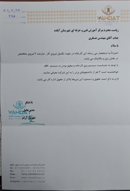 کارخانجات آسیاب آرام نیروهی ماهر فنی وحرفه ای جذب میکند