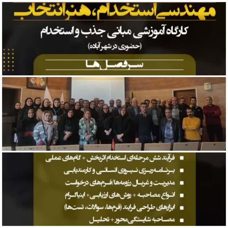 حضور روسای محترم مراکز برادران وخواهران آباده وسورمق وهمچنین کارشناسان ،مربیان وکارآموزان در کارگاه آموزشی مبانی جذب واستخدام با سخنرانی خانم دکتر آرزو زحمت بران مدرس ومشاوره مدیریت ومنابع انسانی در محل سالن اجتماعات شهرک صنعتی آباده